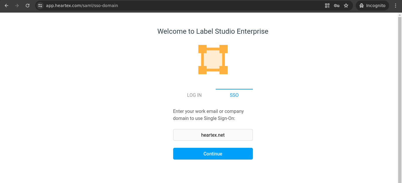 - You should be redirected to the Google SSO login page. After successful authentication, you will be redirected back to Label Studio.