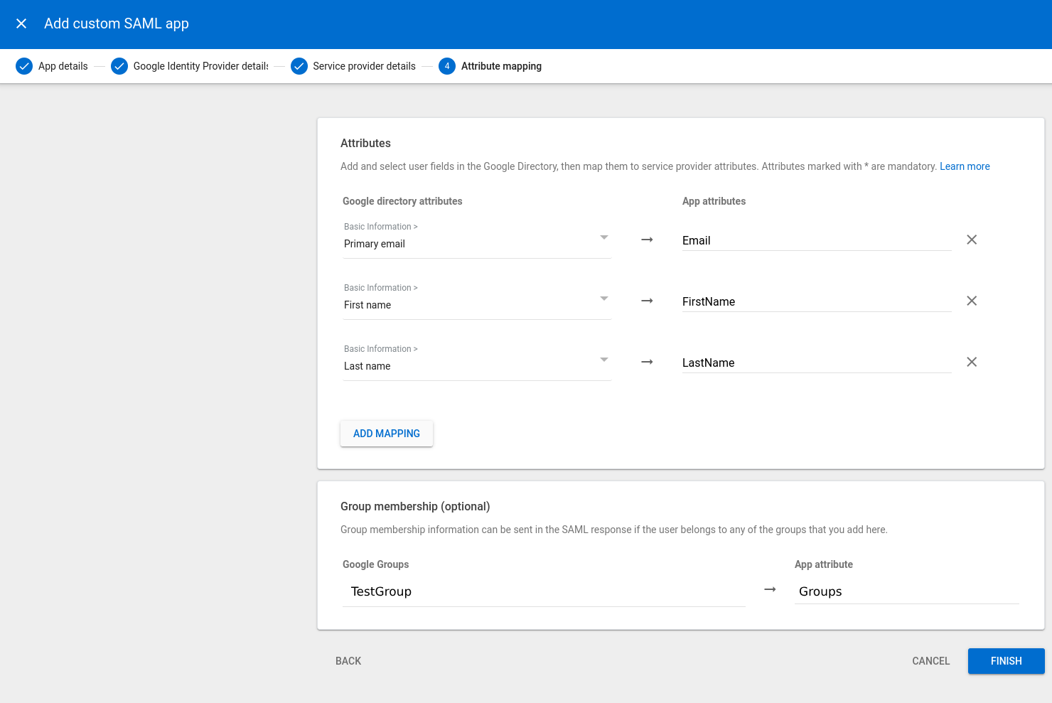 - Set up group mappings to roles and workspaces as needed. Ensure the group names match those sent by Google in the SAML response.