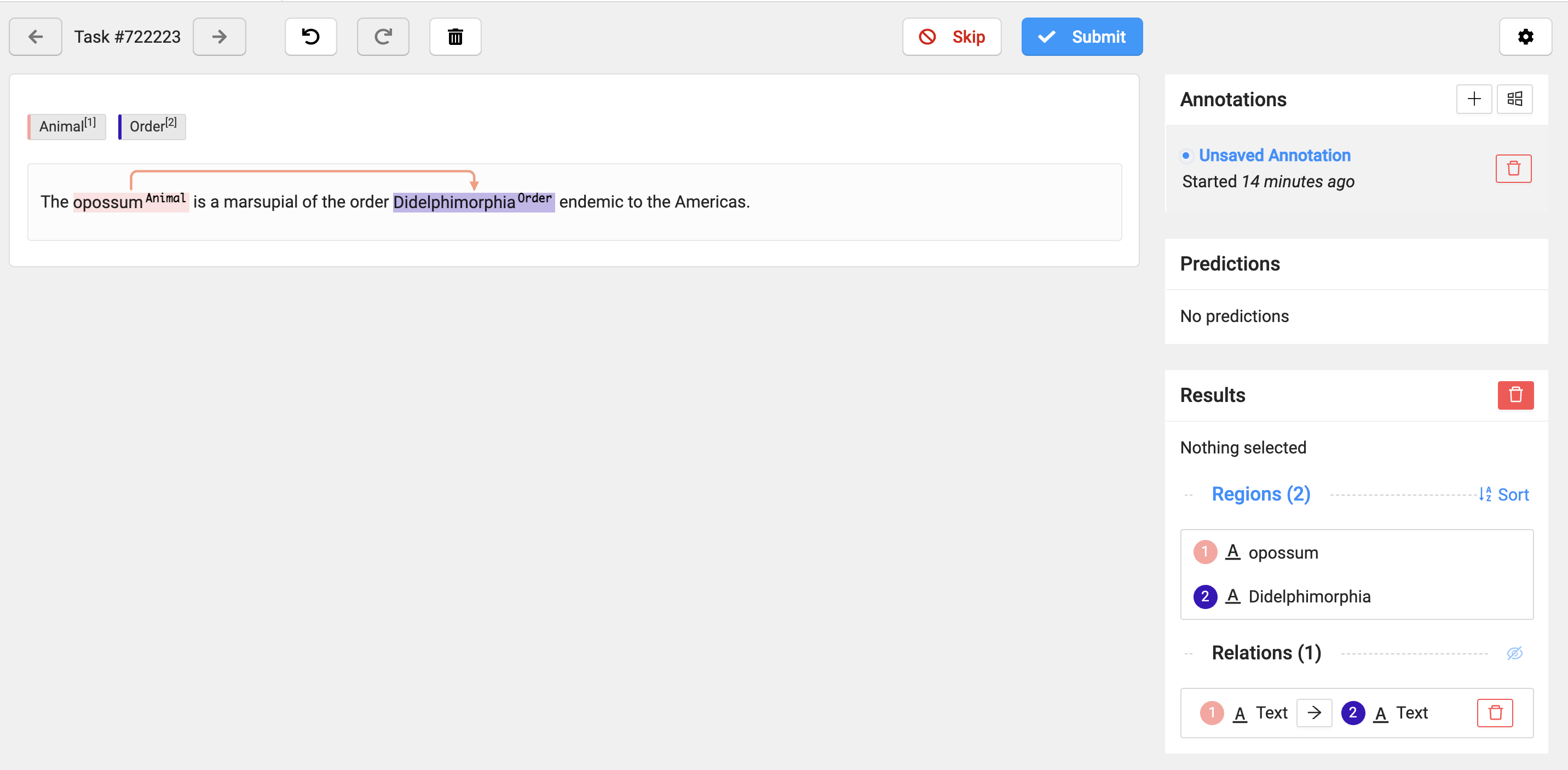 - Click Submit to submit the completed annotation and move on to the next task.